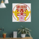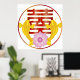 Asian Chinese Calligraphy Text Double Happiness Wedding Symbol with Koi or Carp Gold Fish Pair and Pink Lotus Flower in Eternity Circle Festive Illustration Drawing Poster