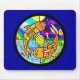 Item features a hand-drawn, digitally-coloured mandala type design featuring koi fish, the different elements of nature, and a yin-yang type design. Design has a stained-glass appearance with a psychedelic touch of bright colours.