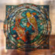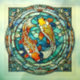 orange golden koi fish,gold and white fishes,swimming pond life,stain glass aquatic nature,beautiful blue water animals,aqua green turquoise teal,japanese asian chinese oriental style,marine sea lake stream life,stained glass style river art,japan china asia ocean