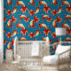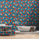 Decorative Koi fish pattern on a blue background.