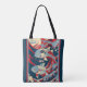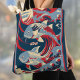 Koi Fish with Red Blue Great Wave Monogram Tote Bag