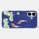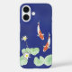 A blue iPhone 16 barely there case featuring an idyllic Zen watercolor painting of two koi in a pond with white water lilies and water lily pads. Also available for other device types!