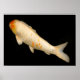 This simple, elegant poster features a delicately coloured orange and white koi fish swimming against a pure black background.