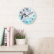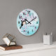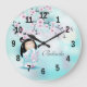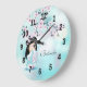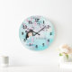 Kokeshi Doll and Cherry Blossoms Turquoise Large Clock