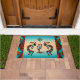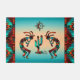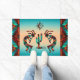 This is a Unique "One of a Kind" Southwest Kokopelli Doormat! It Features a Two Kokopelli Playing the Flute and Dancing Around a Cactus Under the Sun on a Turquoise and Orange Sunset Background...Surrounded by a Southwest Border in Turquoise, Orange and Black!