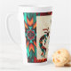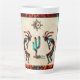 This is a Unique "One of a Kind" Southwest Kokopelli Latte Mug! It Features Two Southwest Kokopelli in Turquoise, Orange and Black Playing the Flute and Dancing Around a Cactus Under the Sun!