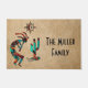 Personalise this Unique "One of a Kind" Southwest Kokopelli Doormat! It Features a Southwest Kokopelli in Turquoise, Orange and Black Playing the Flute and Dancing Around a Cactus Under the Sun...on a Tan Leather Background!