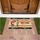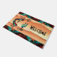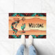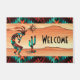 Personalise this Unique "One of a Kind" Southwest Kokopelli Doormat! It Features a Kokopelli Playing the Flute Under the Sun and Dancing Under Around a Cactus on a Desert Background...Surrounded by a Southwest Border in Turquoise, Orange and Black!