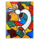 Vibrant color printed glossy cover notebook with a stained glass image of the deity Kokopelli.
