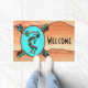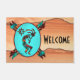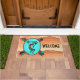 Personalise this Unique "One of a Kind" Southwest Kokopelli Doormat! It Features a Kokopelli Playing the Flute and Dancing Under the Sun on a Turquoise Background, Surrounded by a Southwest Border in Turquoise, Orange and Black Flames...on a Desert Background!