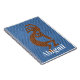This southwest style notebook features a traditional Native American Kokopelli with flute. The brown Kokopelli as will as the blue background have a mosaic, tiled design. Quickly and easily personalise with your name across the bottom of the notebook's cover.