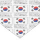 Personalized table runner shows the South Korean Flag with the words, REPUBLIC OF KOREA, below. Shown on a diagonal and tiled. There is a space of white, squiggly, squares with a place for your name. Create a personalized look for yourself or a thoughtful housewarming gift.