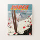 Korea to ski - Beautiful retro style Korean ski travel poster art print.