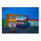 A lonely old woman buys a watermelon and wheels it home in an old baby carriage. Typical street scene in South Korea where grandmothers (Halmoni) use abandoned baby strollers for makeshift shopping carts. This photographic image was adapted from an original painting created by the thrifty painter, Reggie Hart (레지 하트).