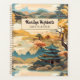A Korean landscape with a temple and trees in teal and gold, highlighted with orange and umber, decorates the cover of this planner. Personalise the cover with your name and current year.