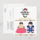 Modern Korean Lunar New Year custom Corporate | Business Greeting Postcard featuring a children dressed up in colourful Korean traditional costume (한복, Hanbok) giving big bow (세배, New Year's Greetings) to their elders. The Greeting "새해 복 많이 받으세요. BEST WISHES FOR A HAPPY NEW YEAR" is written in stylish hand-lettered script calligraphy in Korean. All the texts are pre-arranged for you to personalise easily and quickly with your own words. Available as a folded card (with Company photo inside and without photo), flat card (with message and without message on the back), postcard and Corporate | Business Greeting Cards.