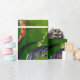 Beautiful paua shell in a swirly pattern, double koru (curl) art overlaying a green ripped paper design.