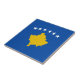 This design consists of the Kosovar flag cleverly reshaped to fit the square tile surface. A decorative and useful item that would make a perfect gift for those who like to remember Kosovo.