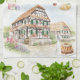 Bring a touch of French countryside charm into your kitchen with this illustrated Kougelhopf d’Alsace recipe tea towel. Featuring a soft watercolor village scene inspired by traditional Alsatian architecture, this design pairs beautifully with a handwritten-style Kougelhopf recipe that feels both nostalgic and timeless.