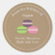A rustic Label Sticker with brown kraft background to used when you offer sweets treats or for small businesses. It comes with an illustration of 3 colourful french macarons in pink, purple and green colours and customisable texts!