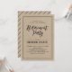 Celebrate your special day with this stylish modern Retirement party invitation template. This design features chic calligraphy and a simple frame with a kraft background.