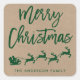 Kraft Modern Brush Script, Santa and Reindeer, Merry Christmas Green Envelope Seal Sticker