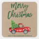 Kraft Brush Script Watercolor Red Vintage Truck with Christmas Tree - Merry Christmas Family Name Envelope Seal - Green