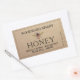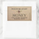 Honey label with Honeybee and double border on a printed kraft background. Order this on a matte label if choosing kraft-coloured background for a more old-fashioned home-style look. Also available on ivory and white background.