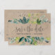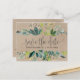 This kraft foliage save the date postcard is perfect for a rustic wedding. The design features a frame of green leaves and leafy greenery botanicals on a faux kraft paper background.