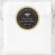 This honey label is fully editable. Personalise with your apiary name, location, apiary and container size. Black circle on a kraft background and brown text. Heraldic honey bee illustration is a vintage mediaeval design.