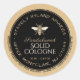 This apiary product label is fully editable. Personalise with your apiary name, location, product description and container size. Black circle on a kraft background and brown text. Heraldic honey bee illustration is a vintage mediaeval design.