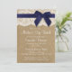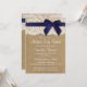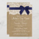 Rustic Kraft, White Lace & Navy Blue Ribbon With Bow Mother's Day Brunch Invitations.