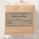 A label for soap or cosmetics products with a kraft paper style background and green text. Features space for your company name, ingredients, business information, and more.