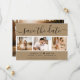 Elegant rustic kraft paper wedding photo save the date card featuring a modern script font and a photo collage on a kraft paper look background. Easily personalise this card with your images and wedding details including a wedding website if applicable.