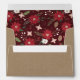 Created to coordinate with the "Christmas Wreath" holiday card collection, this modern envelope features a delicate bow illustration and space for the card recipient's name and address. There is space on the back flap for the customer's address. The inside of the envelope features a coordinating floral pattern made up of poinsettias, leaves, berries, pine cones, and branches on a solid red background.