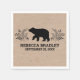 Celebrate your party with this personalised wilderness bear paper napkin. It features bold lettering, a bear among foliage with a kraft background. It makes an adorable addition for your baby boy shower, or birthday party. Designed for you by Blackberry Boulevard.