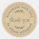 The Kraft Rustic Homemade Thank You label features a warm kraft-style background with elegant off-black lettering and simple botanical accents for a cosy handcrafted feel. Perfect for treat bags, baked goods, jars, gift boxes, and small-batch packaging, this round sticker adds a heartfelt finishing touch to anything made with love. Ideal for home bakers, cottage food businesses, party favours, and thoughtful homemade gifts.