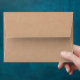 A brown 5x7 envelope with a kraft paper Lining Inside. This simple envelope is a classy way to send rustic invitations.