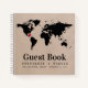 Rustic kraft paper background with a world map and editable heart location on a simple and affordable notebook-style wedding guest book with lots of room for guests to write in their favourite travel destinations, wedding wishes, and marriage advice, a use it as an adventure or journey theme bridal shower gift record, or customise the text for a Bar or Bat Mitzvah, Baby Shower, Graduation Party, or going away party. Other versions available in the Custom Paper Works Zazzle Designer Shop.