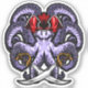 This image depicts a fearsome octopus, styled as a pirate. The octopus has a menacing expression, with wide eyes and a gaping maw. It wears a red pirate hat and is surrounded by its tentacles, which are arranged in a formidable, defensive posture. Two crossed swords are positioned beneath the octopus, further emphasising its pirate identity and aggressive nature. The overall design is bold and dynamic, with a strong emphasis on colour and detail.