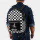 Geometric black and white pattern of squares and rectangles with monster squid octopus and inscription "KRAKEN".