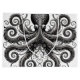 A detailed image of the mysterious kraken with ornate detail in black with swirling patterns. This design was created to embrace mystery and mythology of the kraken.