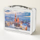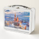 Nice white lunchbox for kids with Krakow twilight, scenic mediaeval city in Poland.