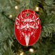 Krampus head ornament, white on red