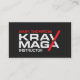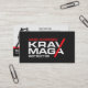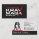 Striking in black, white, and red, this Krav Maga business card design delivers a bold and modern look. The front features strong typography with a dynamic red slash, symbolising the direct and decisive nature of the discipline. On the reverse, a clean silhouette graphic highlights action and movement, while key services are presented in a concise format. Ideal for instructors and self-defence trainers, this card reflects professionalism, focus, and the straightforward power of Krav Maga.