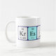 Kreshnik spelled out as Kr Es H N I K (Krypton Einsteinium Hydrogen Nitrogen Iodine Potassium) on a mug for the scientist in you.