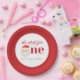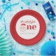 This "Oh what fun it is to be one" first birthday plate features a watercolor red Christmas ornament and a cute modern retry inspired font. This birthday paper plate is perfect for your Christmas, winter, or holiday themed event. Pair with anything in the KRIS Collection for a cohesive look.