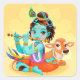 Krishna Indian God playing flute illustration Square Sticker
