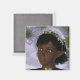 KRW Floral Fairy Fantasy Magnet. Lovely African American fairy with flowers in her hair against a lavender moon fantasy background