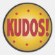 Kudos - the word Kudos on a gold background with stars to show recognition and appreciation for a person or a job well done. Recognise outstanding achievement, honour good work, or reward employees, students, or team members for their efforts.